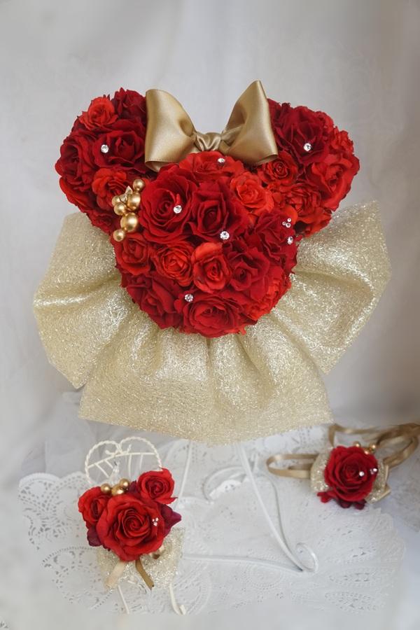 ミッキ(ミニー)シェイプブーケスワロ 大き目リボン レッド リストレットプレゼントキャンペーン 色違い可 [amsb0400]